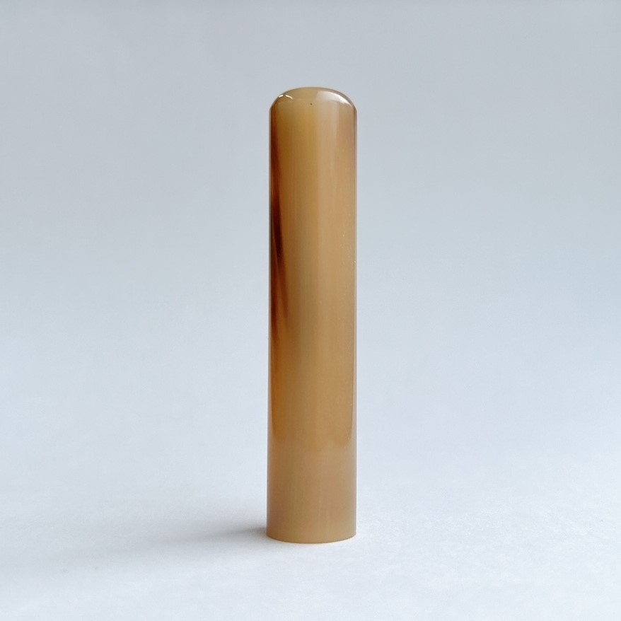 この印鑑には、高品質な陸牛のツノから取られた芯持ち材(角の中心部分)を使用しています。