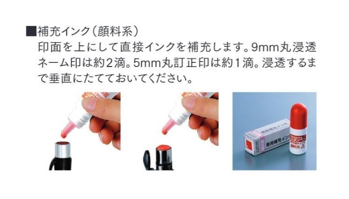 浸透印の発色を保ち、安定した印影でお使いいただくためには、必ず本品をご使用ください。