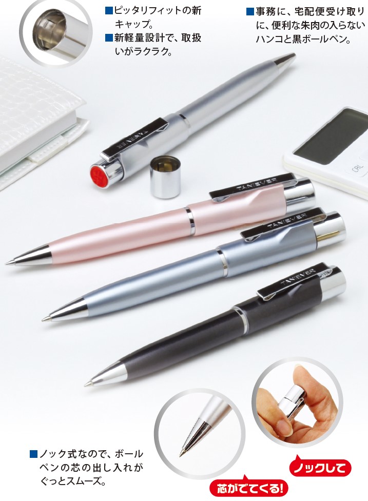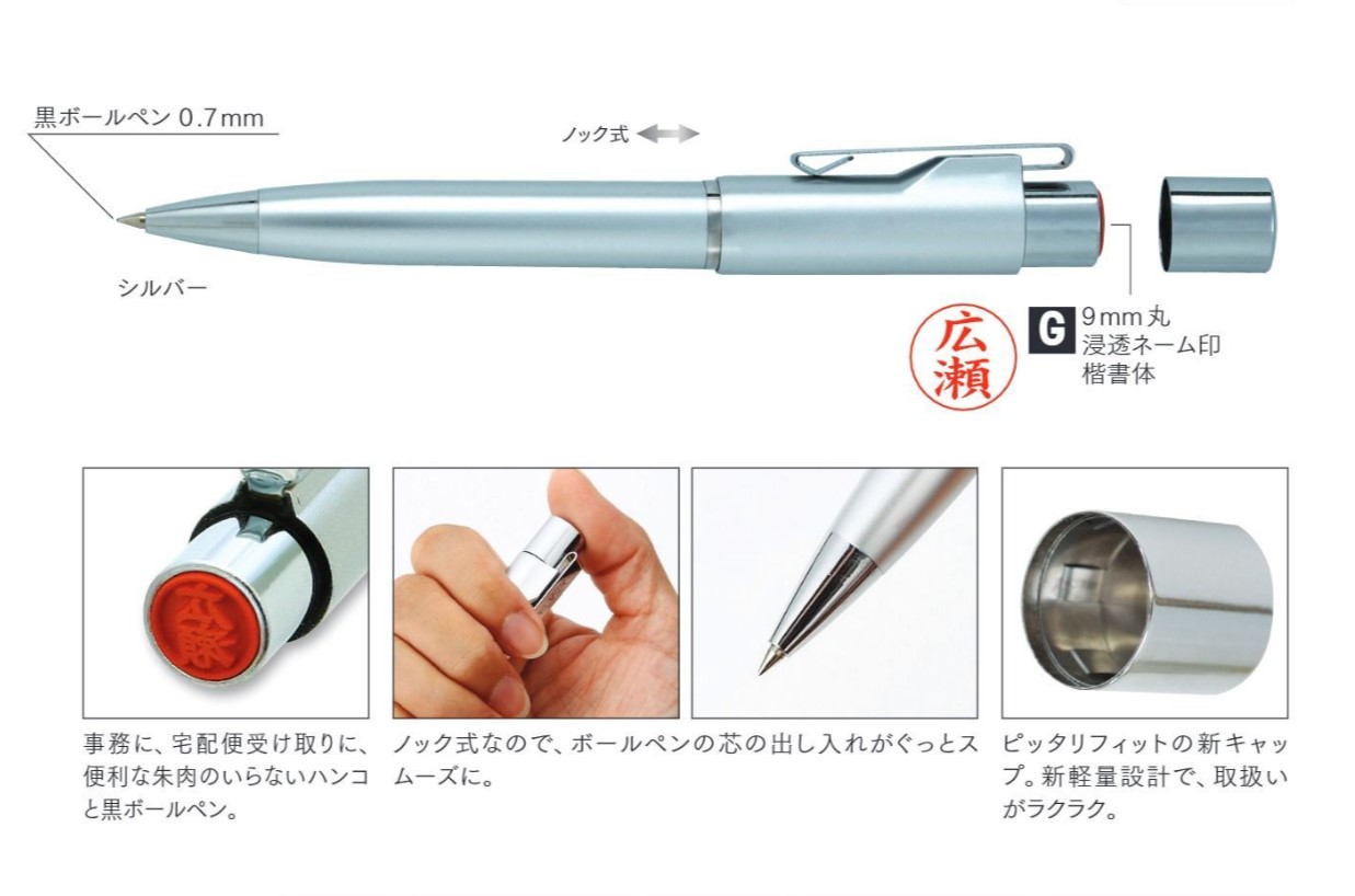 9mm丸の浸透ネーム印とノック式ボールペンが一体になった便利な1本です。