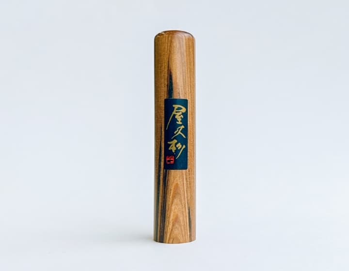 象牙や水牛等の動物性印鑑と共に、木製印鑑としては古くから使われており、広く愛用されています。木製印材の中で最も密度が緻密で、硬度も粘りもあり、捺印性に優れています。当社では、最高級とされる鹿児島産の柘(本柘)を使用しています。
